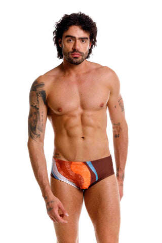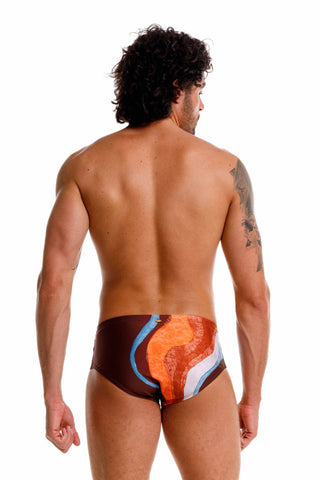 Una silueta ajustada y contemporánea que refleja la intensidad cálida y envolvente de Nebula. El Bañador Hombre Nebula Marrón fusiona estética minimalista con un print de carácter cósmico, donde los tonos tierra, naranjas profundos y contrastes azules evocan paisajes solares y energía expansiva con una vibra sofisticada.