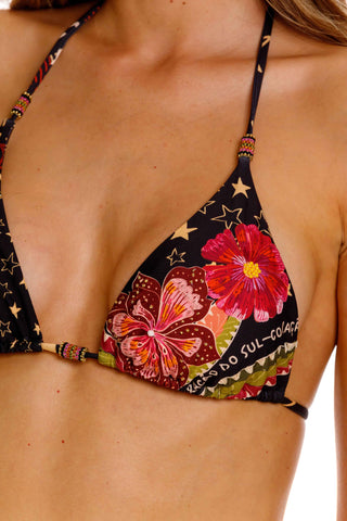 Una silueta clásica que nunca pasa de moda, reinterpretada con el espíritu vibrante de los trópicos. El Top Triángulo de Bikini Samba fusiona el diseño más icónico del verano brasileño con un print artesanal lleno de color, ritmo y vida.