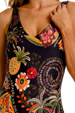 Clásico, cómodo y lleno de carácter. El Entero Lolita Samba es una silueta atemporal reinterpretada con el vibrante print Samba, que celebra la alegría tropical, la energía festiva y el colorido encanto del sur. Su diseño estructurado con escote en V, espalda baja y cobertura media ofrece soporte y estilo a la vez, convirtiéndolo en una pieza esencial para quienes buscan elegancia sin esfuerzo.