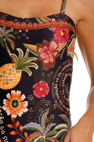 Sofisticación tropical en su máxima expresión. El Entero Strapless Samba combina una silueta clásica y femenina con el vibrante print Samba, que evoca la alegría, el ritmo y los íconos del sur tropical. Con una estructura limpia y líneas rectas, este entero destaca por su elegancia relajada y versatilidad, ideal tanto para un día bajo el sol como para llevarlo como body en ocasiones casuales.