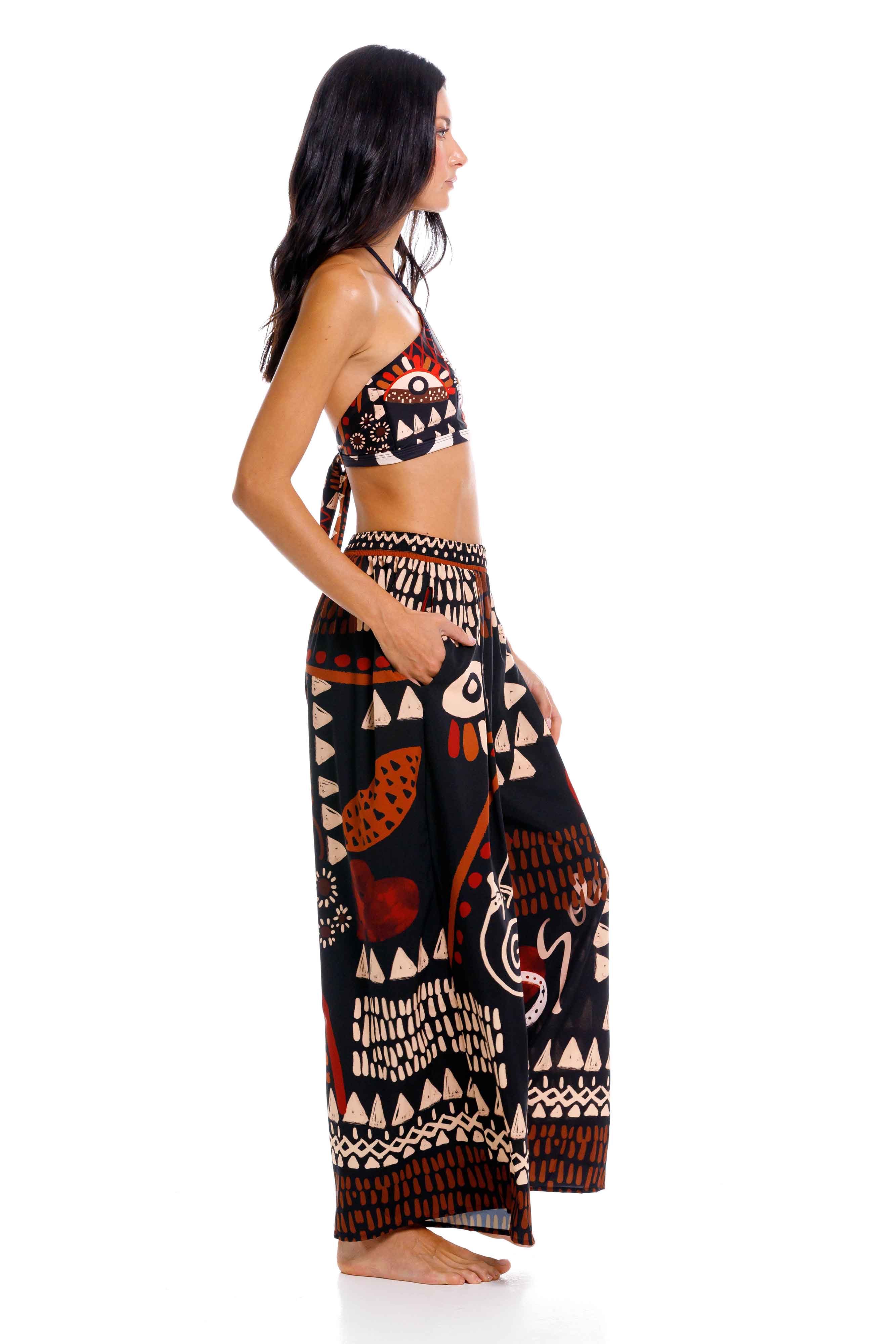 Estos pantalones de la colección Ubuntu te invitan a expresar tu individualidad y a la vez conectar con la riqueza cultural de África. Inspirados en la filosofía Ubuntu, que celebra la unión y la armonía con la naturaleza, estos pantalones combinan la comodidad de un diseño fluido con la elegancia de un estampado vibrante. Su silueta con piernas acampanadas y pliegues crea un look sofisticado y atemporal, perfecto para cualquier ocasión. Confeccionados en nuestra suave tela Holly (100% poliéster), te brindan una experiencia de frescura y movimiento inigualable.