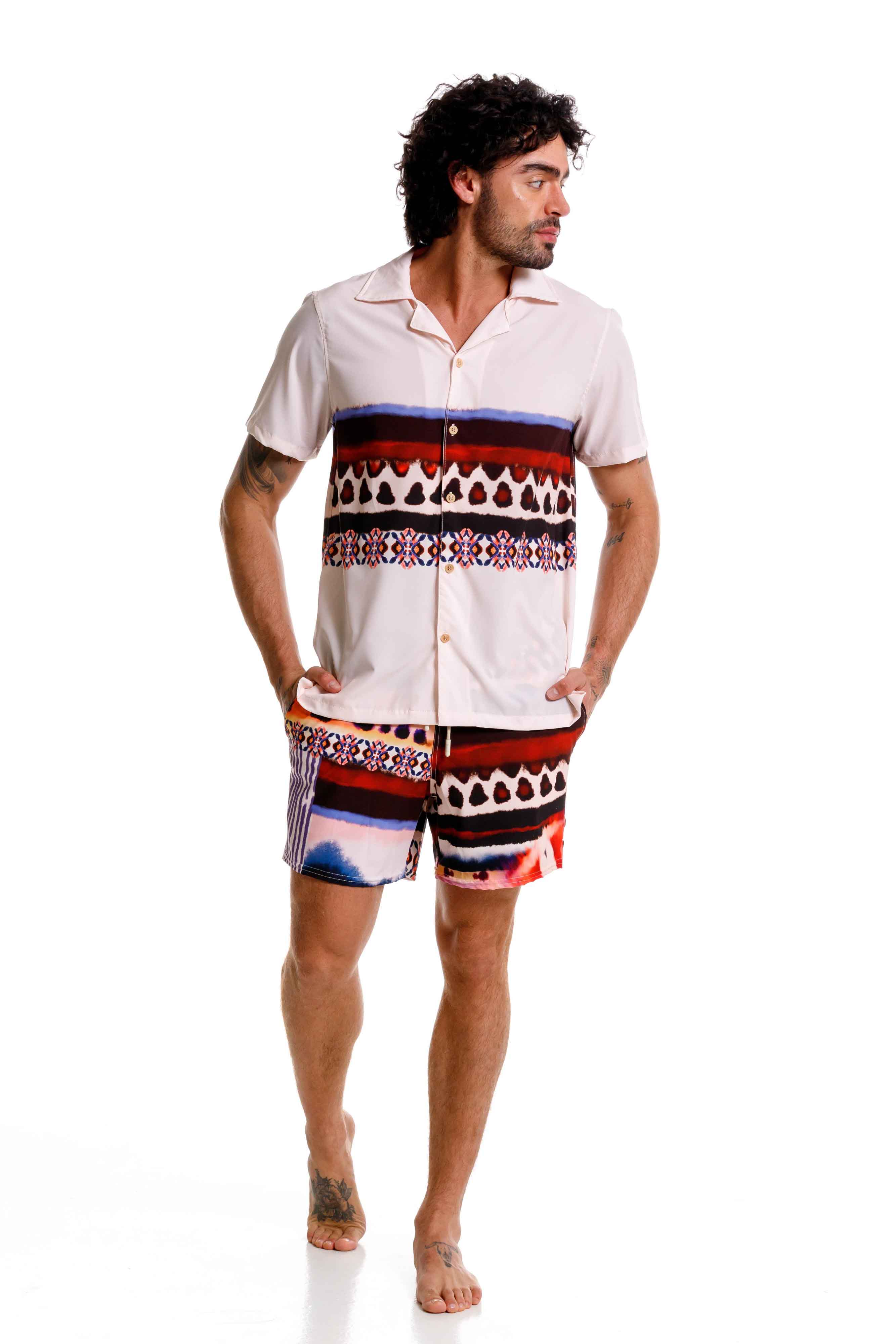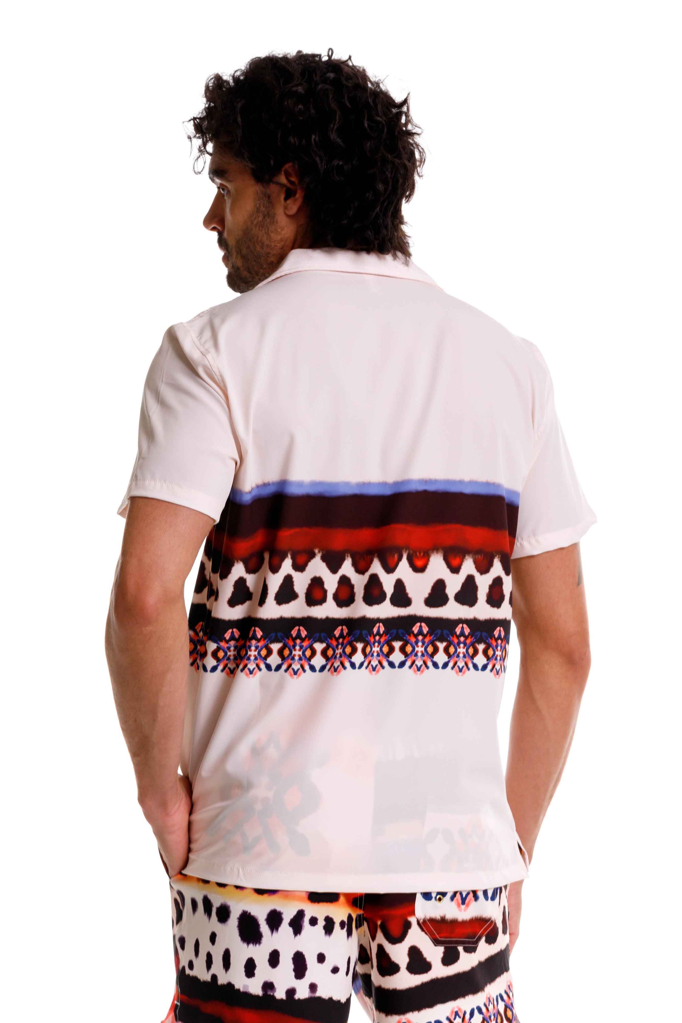 La Camisa Playera Calore es una pieza que equilibra frescura, sofisticación y actitud relajada. Su silueta de manga corta y caída ligera está pensada para climas cálidos, mientras el print Calore introduce un juego de contrastes y tonos intensos que evocan el calor del trópico y la energía del verano contemporáneo.